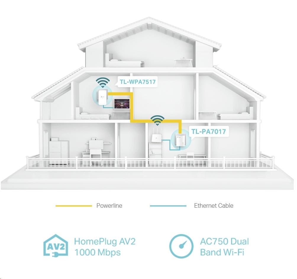 | Package Contents | AV1000 Powerline Wi-Fi Kit: TL-WPA7517 & TL-PA7017 Ethernet Cable × 2 Quick Installation Guide |