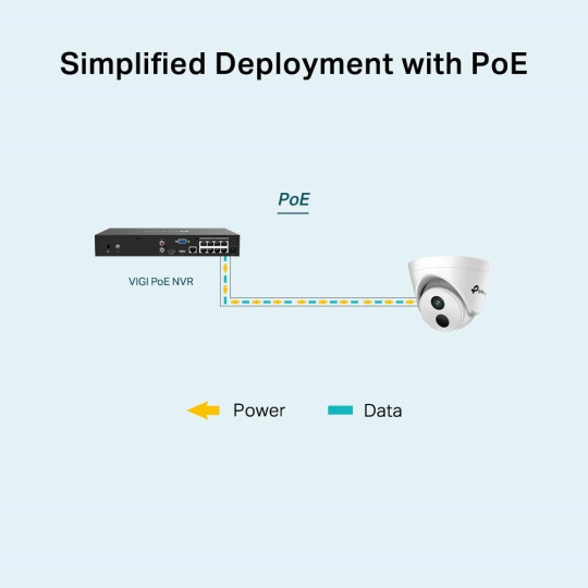 Zjednodušené nasazení s PoE: Snadno připojte a napájejte kameru s PoE pomocí jednoho kabelu RJ45, který přenáší data i napájení. Není potřeba žádný napájecí adaptér.