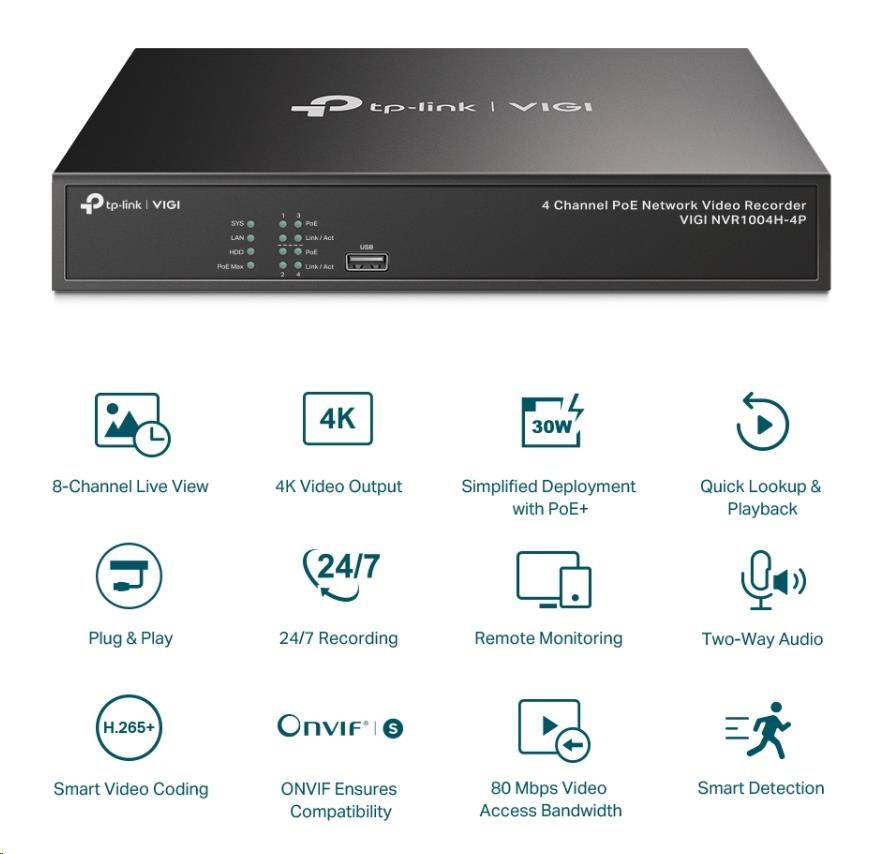 VIGI 4kanálový PoE+ síťový videorekordér