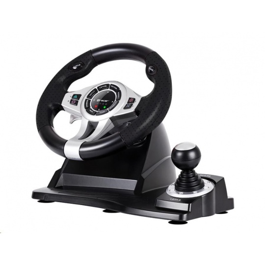 Automobilové závody jsou vaším živlem? Nastupte do závodu s volantem TRACER Roadster a nechte své protivníky za sebou. Vysoce kvalitní volant TRACER Roadster je kompatibilní jak s konzolemi PS3 / PS4 / Xbox One, tak s PC. Volant pracuje velmi tiše a plynule. Převodovka a samostatný modul s brzdovými a plynovými pedály oživí vaše řídicí centrum, což umožňuje rychlou reakci, zrychlení i pohodlné brzdění a řazení. Vaše jízda bude stejně dynamická, jako byste seděli za volantem skutečného soutěžního vozu. Úhly otáčení 270 stupňů vám umožní plně se dostat do závodu. Zařízení lze připevnit k zemi pomocí přísavek, což zajišťuje stabilitu volantu i při těch nejdivočejších závodech. Špičkové materiály herního volantu Roadster z něj činí spolehlivé a velmi odolné zařízení. Tlačítka odpovědná za manévry a 8pásmový analogový D-pad byly zabudovány do volantu, aby umožňovaly rychlý a pohodlný přístup. Užijte si realistický herní zážitek a pohodlí závodního kola. Volant potažený perforovanou gumou zabraňuje pohybu zařízení v rukou, když se řítíte dráhou. Čtyři LED indikátory na volantu pomáhají udržovat kontrolu nad zrychlením, aniž byste museli spouštět oči ze stopy.
