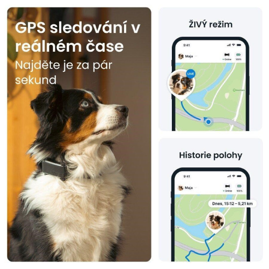GPS tracker pro psy je 100% vodotěsný, odolný proti nárazům a jeho baterie vydrží až 10 dnů. Pasuje na většinu obojků a postrojů. Je určen pro psy o hmotnosti nad 4 kg.Zprávy o nebezpečí