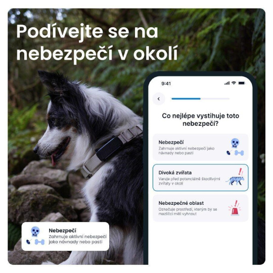 Nahlašujte rizika v okolí – jako jed, nebezpečné oblasti nebo volně žijící zvířata – na mapě v aplikaci Tractive. Když se vás mazlíček přiblíží k rizikům, která byla nahlášena jinými uživateli Tractive trackerů, dostanete upozornění.Shrnutí vlastností