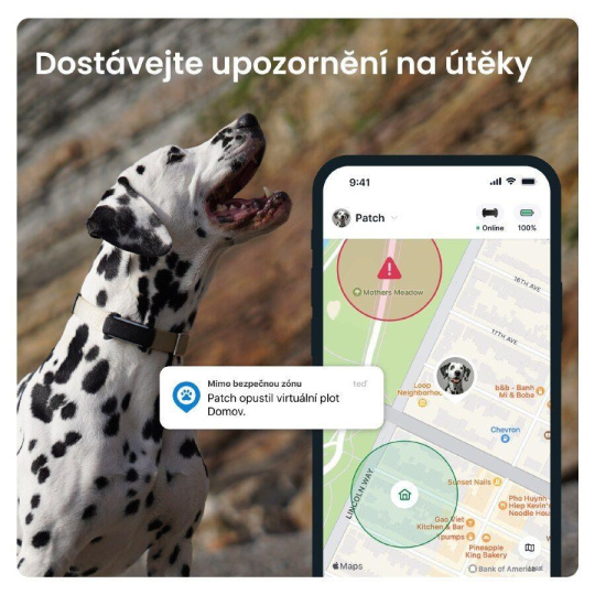 Nastavte Virtuální plot pomocí mapy v aplikaci Tractive. Pokud váš pes opustí bezpečnou zónu, dostanete upozornění na útěk. Označte nebezpečné zóny, abyste věděli, když se vaše štěňátko dostane někam, kam nemá.