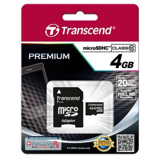 TRANSCEND MicroSDHC karta 4GB Class 10 + adaptér