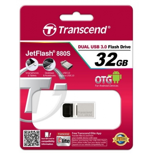 Transfer files to and from your mobile device with ease while on the go. Transcend's JetFlash 880 USB 3.0 OTG Flash Drive is designed to transform the way you carry and exchange personal digital media. The full-size USB 3.0 interface offers even faster transfer speeds to boost efficiency.