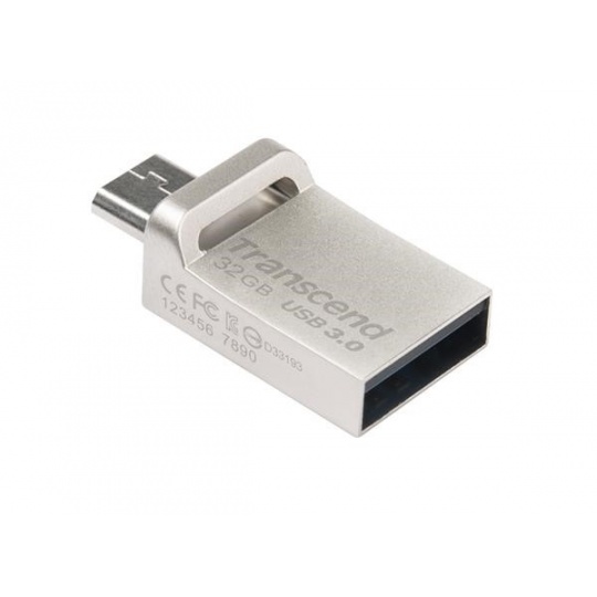TRANSCEND Flash Disk 32GB JetFlash®880S, USB 3.0/micro USB (R:90/W:20 MB/s) stříbrná