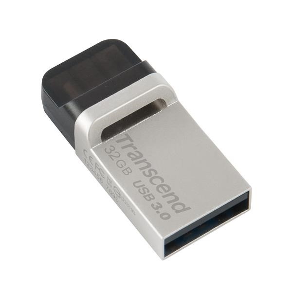TRANSCEND Flash Disk 32GB JetFlash®880S, USB 3.0/micro USB (R:90/W:20 MB/s) stříbrná