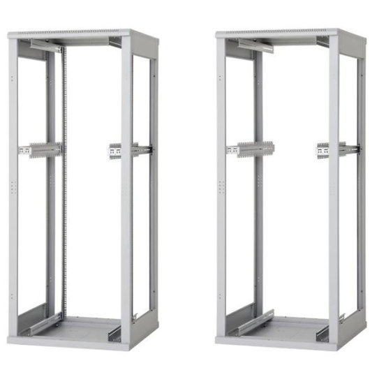 (platí pro šíři rozvaděče 800 mm). Systém umožňuje instalaci posuvných vertikálních lišt v rozponu 19“, 21“ a 23“, přesně podle požadavků instalovaných zařízení.