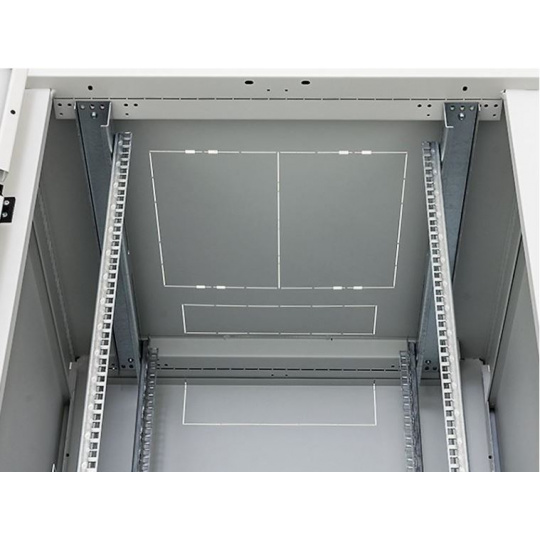 U rozvaděčů hlubších než 800 mm dodáváme již v základní výbavě třetí pár vertikálních lišt pro montáž technologie. Díky svému otevřenému profilu neomezují instalaci hlubších zařízení.