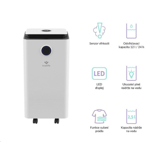 ticle id="description_truelife_2019-11-19"> TrueLife AIR Dehumidifier DH5 Touch – Odvlhčovač vzduchu Zbavte se jednou pro vždy vlhkých zdí, plísně a zatuchlého vzduchu. Odvlhčovač vzduchu Truelife AIR Dehumidifier DH5 Touch, který slouží i jako čistička, dokáže zkondenzovat až 12 l vody za jediný den. Vaření... více