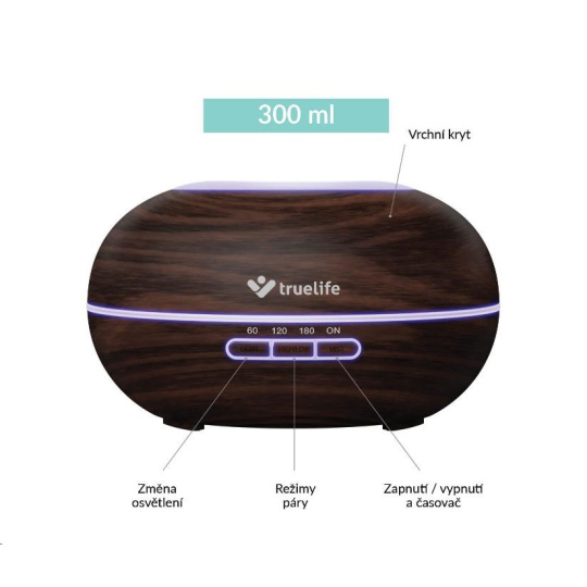 icle id="description_truelife_2019-11-19"> TrueLife AIR Diffuser D5 Dark – Aroma difuzér a zvlhčovač vzduchu Stačí stisknutí jediného tlačítka a aroma difuzér Truelife provoní vzduch v místnosti vaší oblíbenou vůní. Vytvoří vám příjemnou atmosféru pro relaxaci, cvičení jógy nebo meditaci. Stačí do nádržky s ... více