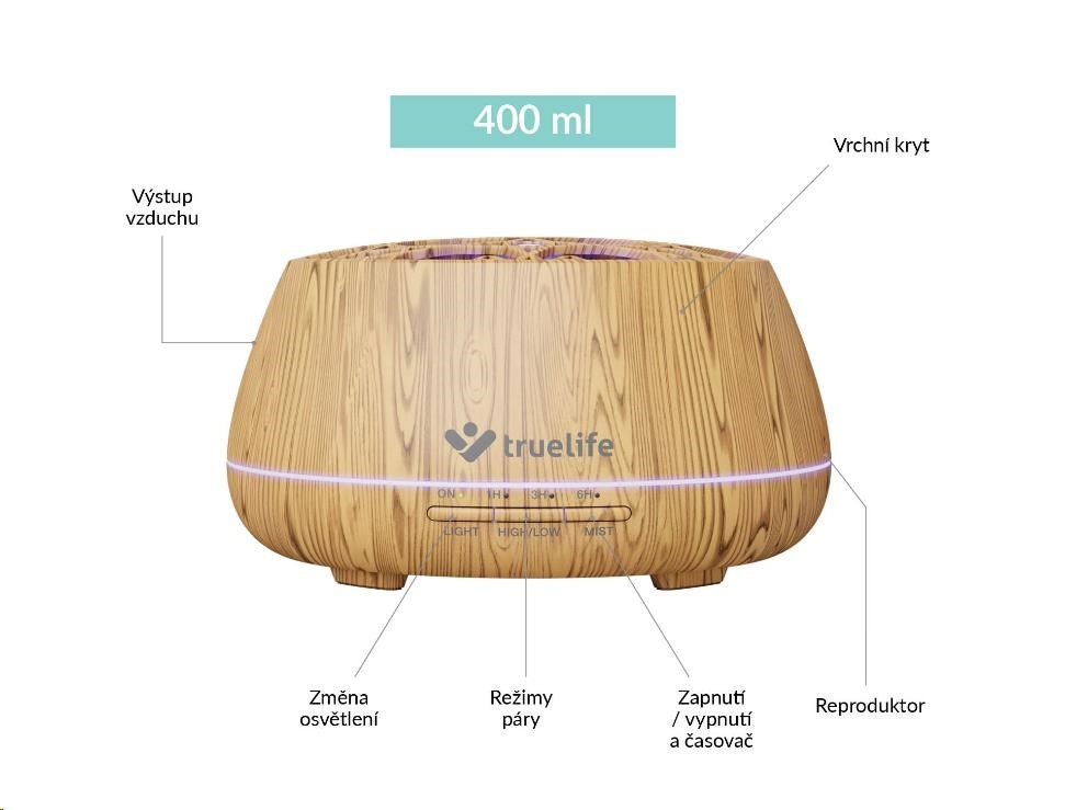TrueLife AIR Diffuser D9 Smart – Aroma difuzér a zvlhčovač vzduchu se zabudovaným reproduktorem a Bluetooth