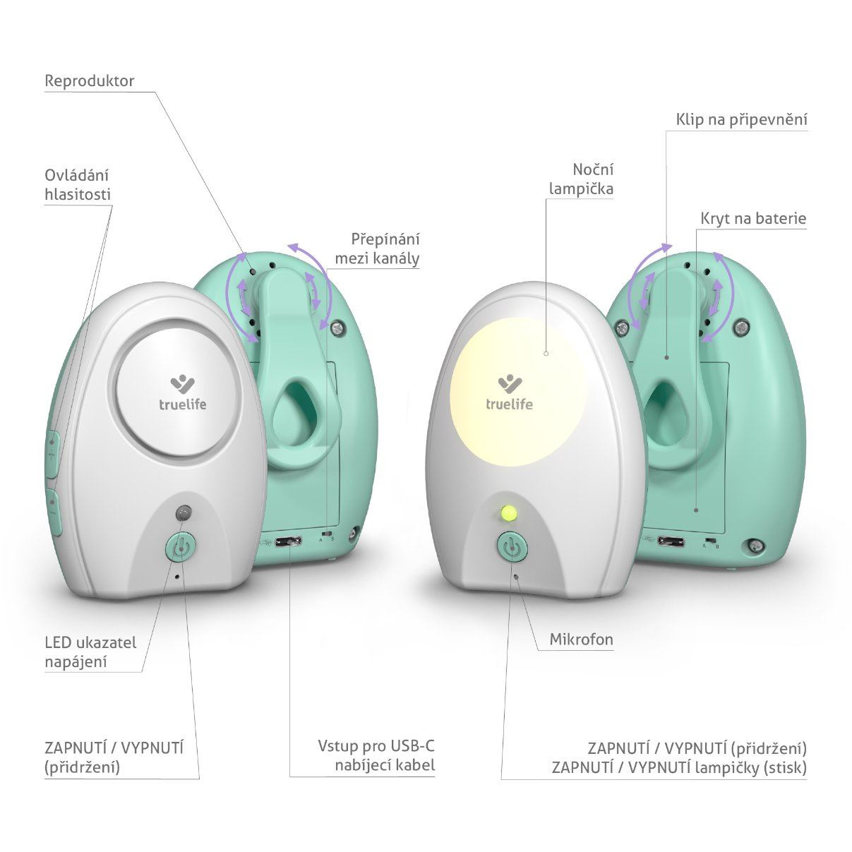 TrueLife NannyTone VM Pocket - Digitální audio chůvička s dobíjecími jednotkami