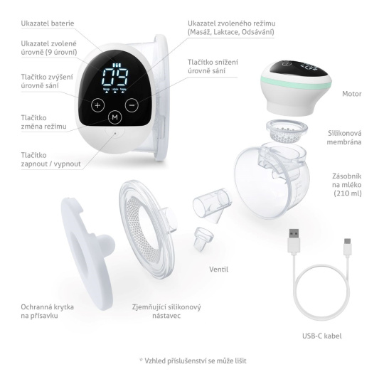 Součástí odsávačky je zabudovaný zásobník na mléko o objemu 210 ml.