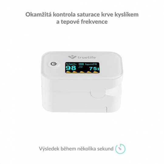 Oxymetr TrueLife X3 zajistí okamžité a přesné měření saturace krevního hemoglobinu kyslíkem a tepové frekvence. Naměřené hodnoty okamžitě a přehledně zobrazí na vestavěném displeji. Je vhodný zejména pro pacienty s respiračním onemocněním nebo onemocněním srdce, ale i pro vrcholové sportovce. Své uplatnění ale nalezne v lékárničce každé domácnosti.