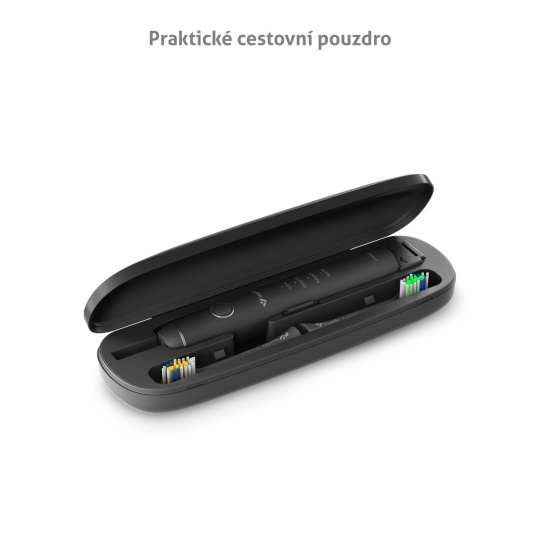 Produkt:Zubní kartáček; Počet programů:4; Počet pulzů za minutu:Nespecifikováno; Výbava:Časovač, Pouzdro, Náhradní hlavice; Barva:Černá; Napájení:Baterie; Určení:Dospělí.... více