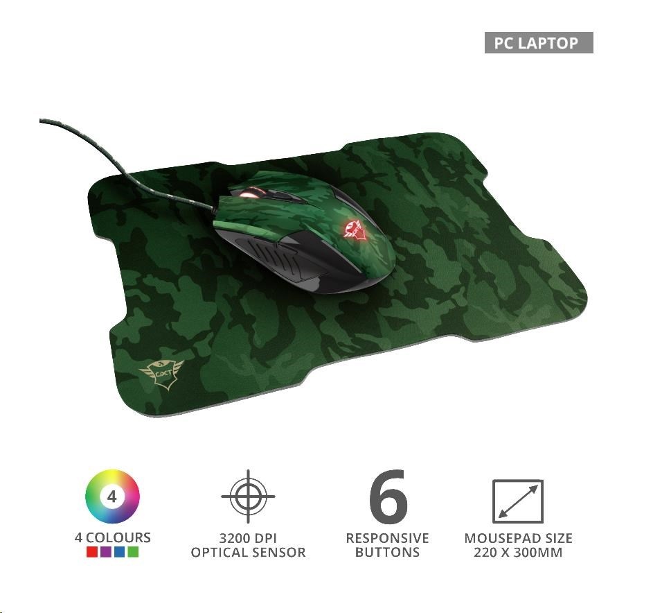 TRUST herní Myš s podložkou GXT 781 Rixa Camo Gaming Mouse & Mouse Pad