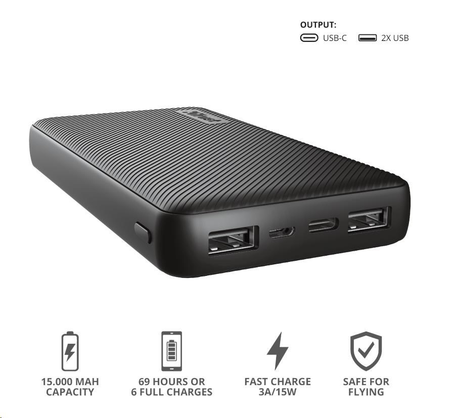 Fast and high-capacity powerbank in compact design (15.000 mAh)