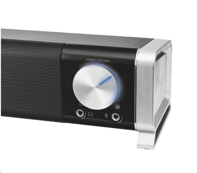 Stylový horizontální reproduktor navržený tak, aby jej bylo možné ideálně umístit pod jakýkoliv počítačový monitor.