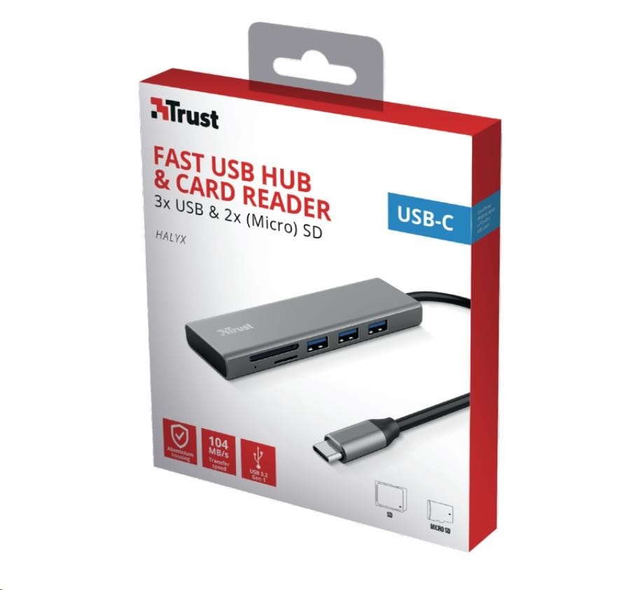 TRUST rozbočovač HALYX, Fast USB-C Hub & Card reader