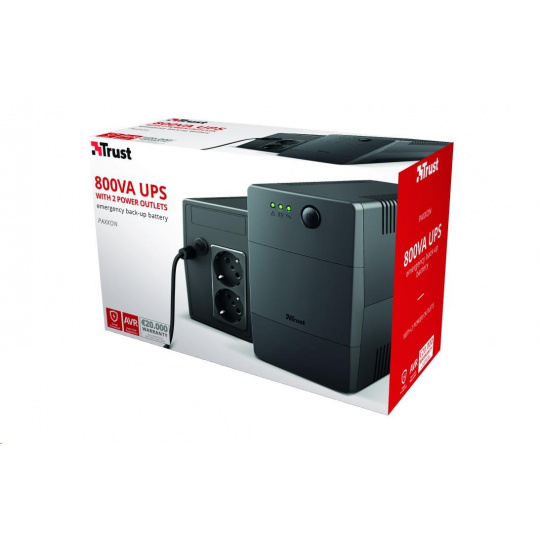 TRUST UPS Paxxon 800VA UPS with 2 standard wall power outlets