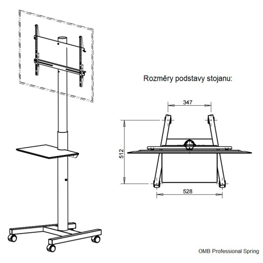 Tv stojan OMB Professional Spring Televizní stojan s plynovou pružinou pro snadné a rychlé nastavení výšky 140-170cm bez nářadí, nosnost 40kg, VESA 100x100 až 600x400, na televizory a monitory 32" až 65" Profesionální stojan robustní, velmi pevné, bezpečné a stabilní konstrukce, který má uvnitř nosníku integrovanou plynovou pružinu pro možnost velmi snadného nastavení výšky obrazovky bez nutnosti použití jakéhokoliv nářadí, navíc neskutečně rychle a pohodlně. Plynová pružina zajistí po stlačení bezpečnostní páčky plynulé vyjetí obrazovky do horní pozice, v případě potřeby snížit výšku stačí zatlačit na obrazovku. Regulovat výšku je možné v rozmezí 140cm až 170cm (výška stojanu po střed obrazovky). Stojan je ideální na televizory a monitory s hmotností do 40kg, které podporují jakýkoliv VESA standard v rozmezí 100x100 až 600x400mm včetně. Doporučená úhlopříčka je 32" až 65", ale je možné použít i větší obrazovky až do úhlopříčky 65". Podstavec stojanu je osazen kvalitními pojezdovými kolečky, které zajišťují vynikající mobilitu. Televizní stojan OMB Professional Spring dodáváme v černém provedení. Televizní stojan s nastavením výšky a kolečky OMB Professional Spring Technické údaje: max. zatížení 40kg podpora VESA standardu 100x100 až 600x400 doporučená úhlopříčka zavěšené obrazovky 32" až 65" nastavitelná výška stojanu v rozmezí 1400 až 1700mm integrovaná plynová pružina pro snadné a rychlé nastavení výšky bez použití nářadí možnost dokoupení police na příslušenství OMB Shelf Handy s rozměry 447x300mm nosnost police na příšlušenství 5kg robustní, velmi pevná konstrukce profesionální kvalita bezpečný, stabilní stojan barevné provedení černé záruka 3 roky Televizní stojan s plynovou pružinou pro snadné a rychlé nastavení výšky v rozmezí 140 až 170cm, nosnost 40kg, VESA standard 100x100 až 600x400 - OMB Professional Spring Televizní stojan OMB Professional Spring podporuje VESA standardy: VESA 100x100 VESA 200x100 VESA 200x200 VESA 300x200 VESA 300x300 VESA 400x200 VESA 400x300 VESA 400x400 VESA 600x400 Na Tv stojan je možné zavěsit všechny typy televizorů a monitorů, které mají hmotnost do 40kg a podporují kterýkoliv z výše uvedených VESA standardů. Velikost televizoru není podstatná, pouze doporučujeme minimální úhlopříčku 32", ideálně 37" a větší. Na televizní stojan OMB Professional Spring je možné dokoupit polici na příslušenství OMB Shelf Handy s nosností 5kg: Police na příslušenství ke stojanu OMB Professional Spring - OMB Shelf Spring Díky vynikajícímu řešení nastavitelné výšky pomocí plynové pružiny zvládne nastavování výšky bez jakéhokoliv nářadí a námahy kdokoliv. Stojan je ideální pro využití na prezentacích, výstavách, přednáškách, konferencích, čekárnách a kdekoliv pro komerční i nekomerční účely..