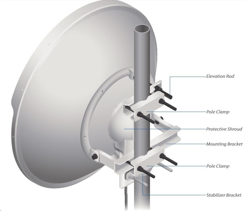 Mounting Universal Pole Mount, RocketM Bracket, and Weatherproof RF Jumpers Included