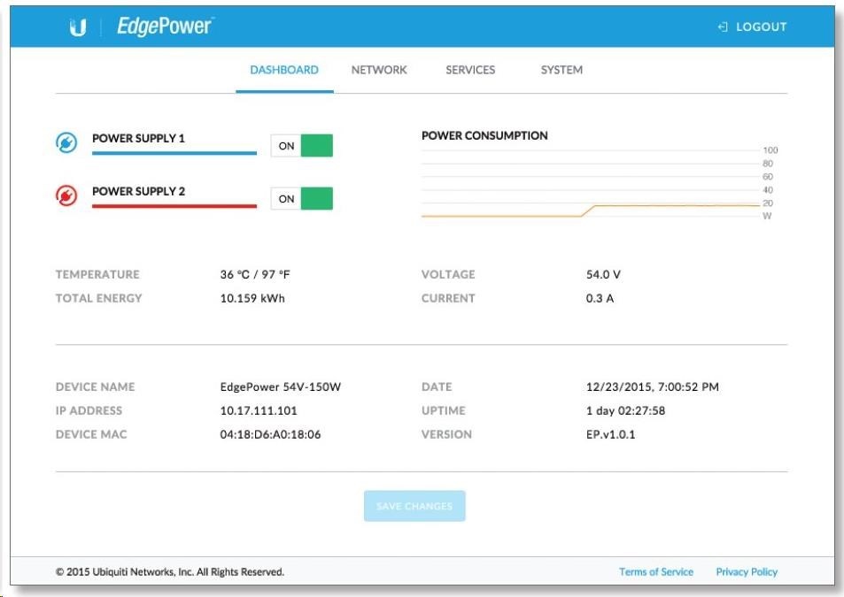 Edgepower je výkonné rackmount napájecí řešení s webovým managementem vhodné pro napájení EdgePoint routerů a switchů. EdgePower obsahuje 2 šachty pro modulární napájecí zdroje, které lze pomocí managementu sloučit (max. výkon 300W) nebo automaticky zálohovat (max. výkon 150W). Napájecí zdroje jsou typu hot-swap a je možné je vyměnit za chodu.