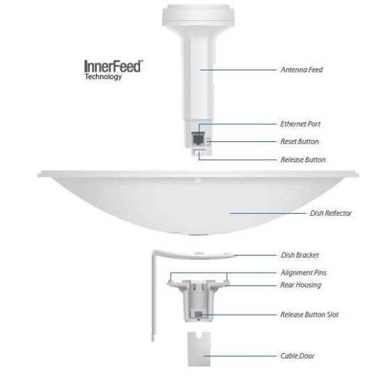 Popis produktu PowerBeam vychází z dřívější velmi úspěšné řady produktů NanoBridge. Nově obsahuje výkonější hardware a chytřejší konstrukci. Konstrukce byla maximálně zjednodušena a instalace v terénu je nyní rychlejší a pohodlnější, pro zajímavost bych zmínil tlačítko pro uvolnění zářiče což byl problém u starší generace. Uvnitř PowerBeamu se nachází výkonný MIPS procesor Atheros 74KC s frekvencí 560MHz, kterému sekunduje 64MB operační paměti typu DDR2 a 8MB Flash paměť. Síťový port podporuje 10/100/1000 Ethernet a lze jej napájet přes pasivní 24V/0,5A Gigabit PoE, které je součástí balení. Teoretická maximální propustnost jednotky je 300Mbit (MCS15, 802.11n, 2x2MIMO, přířce kanálu 40MHz). InnerFeed technologie InnerFeed™ technologie integruje rádiovou část do zářiče od antény čímž odpadá potenciální ztráta na RF kabelu. Tvar a velikost PowerBeamu nabízí nejvyšší možný zisk antény. Navíc díky excelentní směrovosti Vám bude PoweBeam skvěle pracovat i ve více zarušeném prostředí. Největší výhodou jakéhokoliv airMAX zařízení je vedle vysoké přenosové rychlosti díky standardu 802.11n využití časového multiplexu TDMA. Protokol TDMA airMAX umožňuje vynikající škálovatelnost a vysokou propustnost při zachování nízkých latencí v PtMP sítích. Obsah balení • Zařízení • Parabola • PoE napájecí zdroj • Napájecí kabel • Plastová část pro uchycení zářiče • Držák Technické parametry Bezdrátové vlastnosti Bezdrátové frekvence:5 GHz WiFi standardy:airMAX, 802.11a, 802.11n Přenosová rychlost - 5GHz [Mb/s]:300 Vysílací výkon 5GHz [dBm]:26 Šifrování:WPA2 AES 5GHz MIMO:2 x 2 Typ antény:Vestavěná Počet vestavěných antén:2 Zisk antény [dBi]:25 Konektory a rozhraní Rychlost LAN:(1) 10/100/1000Mbps Gigabit LAN:Ano Napájení Napájení přes PoE:24V DC Typy PoE:PoE-In (pouze) Max. spotřeba energie [W]:8 Fyzické charakteristiky Použití:Venkovní Tlačítka:Reset Provozní teplota [°C]:-40 až 70 Hmotnost [g]:1753 Šířka [mm]:420 Výška [mm]:420 Hloubka [mm]:275 Hardware CPU:MIPS 74Kc Frekvence CPU [MHz]:560 RAM [MB]:64 Software Operační mód:Klient, Repeater, AP Router, Access Point, Klient Router (wisp) Podpora IPv6:Transparentní (režim bridge) Výchozí IP adresa:192.168.1.20 Výchozí jméno a heslo:ubnt / ubnt.