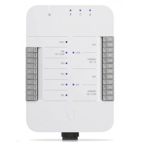 UniFi Access Hub je základní komponenta k instalaci přístupového systému UniFi Access. UniFi Access Hub je inteligentní jednodveřový IP kontroller, který je kompatibilní s většinou elektrických zámků, magnetických zámků a s celou řadou 12V příslušenstvím jako jsou pohybové senzory, tlačítka a alarmy. Instalace je velmi rychlá, snadná a nabízí jednoduchou správu uživatelů, návštěvníků, plánů a úrovní či oprávnění přístupů přes UniFi Access Controller. Hub je napájen přes PoE, které není součástí dodávky.