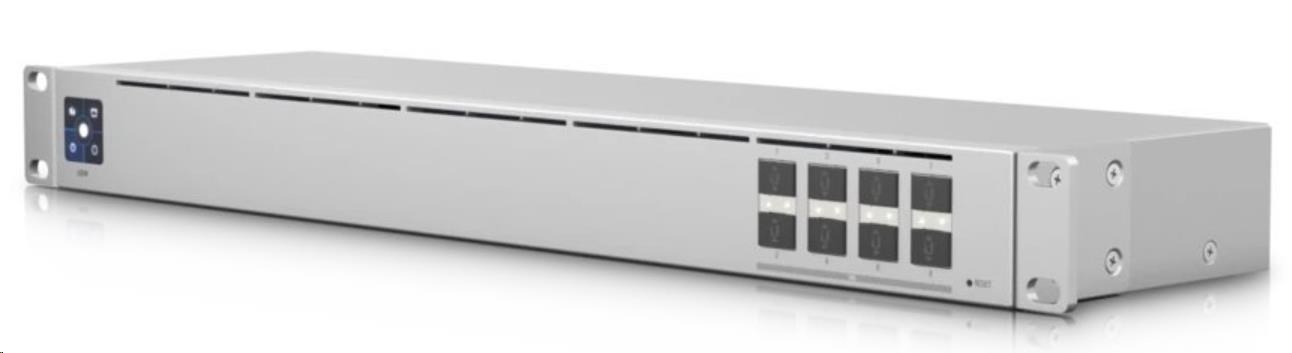 UniFi Switch Aggregation je agregační managovatelný L2 UniFi Switch s 8x SFP+ sloty podporující rychlost 1G/10Gbps. Velmi kompaktní a bezventilátorové 19" rackmount provedení doplňuje informační dotykový displej schopný zobrazovat statistiky jednotlivých portů, chybových stavů, vytížení sítě a dalších informací.