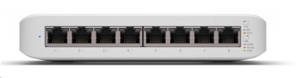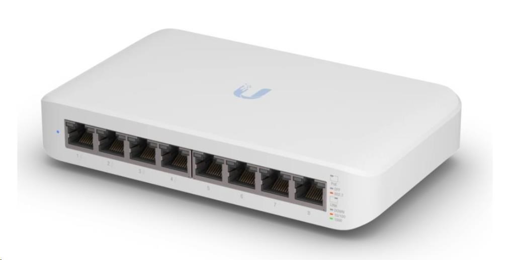 USW-Lite-8-PoE je Gigabitový PoE L2 Switch od Ubiquiti Networks v desktop provedení s maximálním PoE budgetem 52W. Managovatelný switch s 8 Gigabit metalickými porty a celkovou propustnost 16 Gbps. Pouze 4 porty z 8 podporuje PoE napájení 802.3af/at s maximálním výkonem 30W/port. Switch je díky nízkému PoE budgetu vhodný spíše jako datový s napájením pár zařízení na okraji sítě