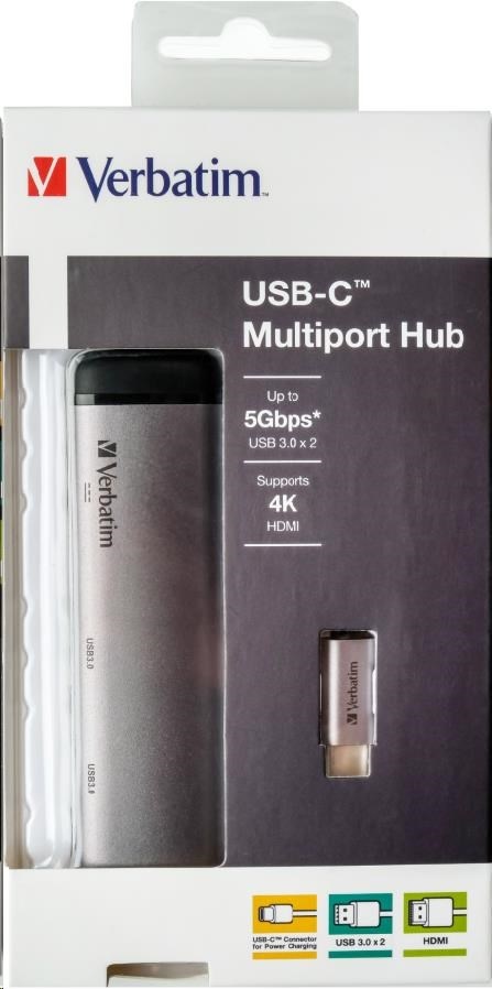 VERBATIM Dokovací stanice USB-C 4v1, 1x HDMI, 1xUSB-C, 2xUSB, šedá