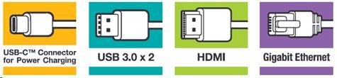 Interface USB-C (USB 3.1 GEN 1), 2 x USB 3.0, HDMI, Gigabit Ethernet