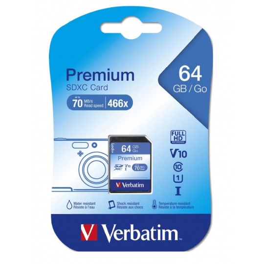 VERBATIM SDXC karta 64GB Class 10, UHS-1 (R:70/W:10 MB/s)