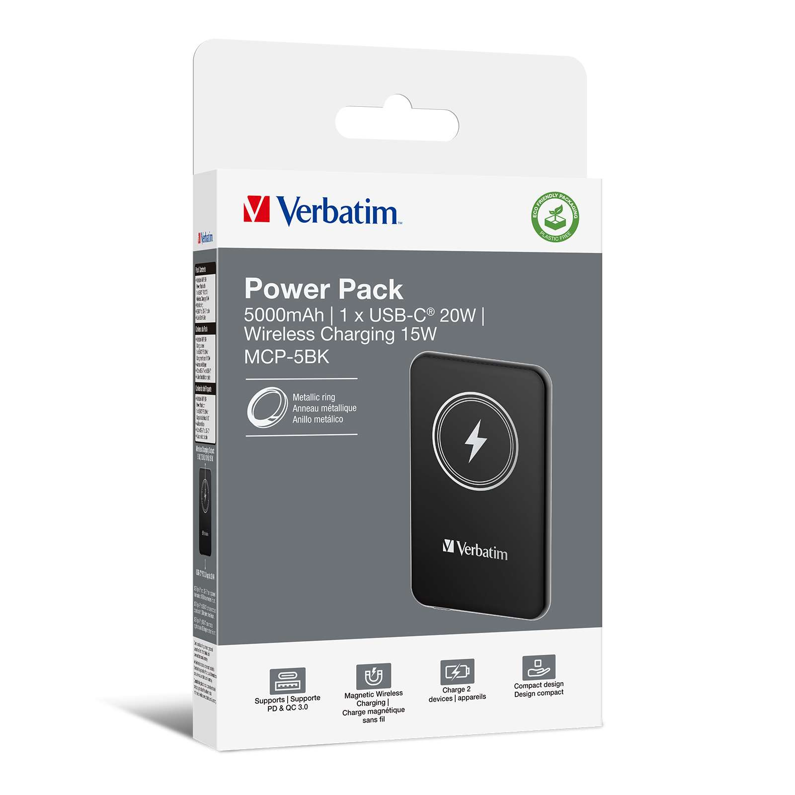 VERBATIM Powerbanka Charge 'n' Go, Magnetická, 5000 mAh, USB-C, Černá