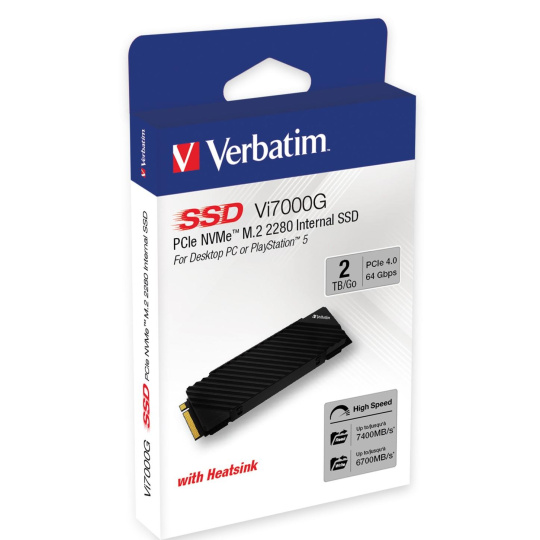 VERBATIM SSD Vi7000G Internal PCIe NVMe M.2 SSD 2TB , W 6700/ R 7400MB/s