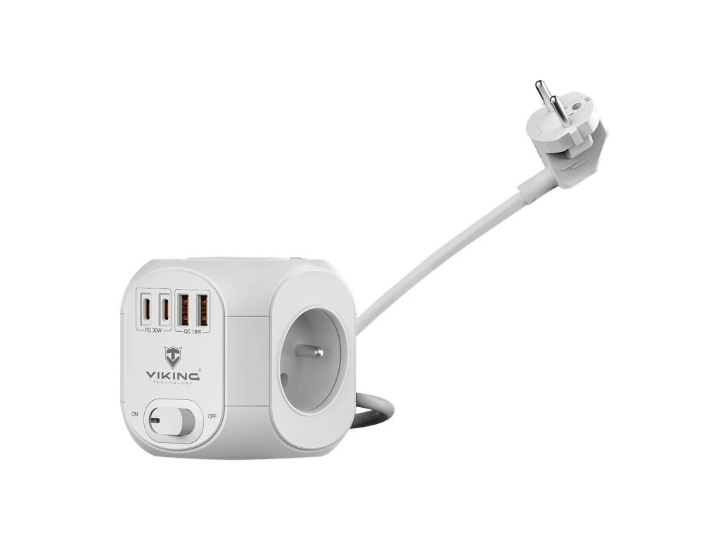 Viking AC CUBE PD30 je praktickým řešením pro každé prostředí – ať už v kanceláři, kde pomůže udržet pořádek na pracovním stole, v obývacím pokoji pro organizované a pohodlné napájení, v dětském pokoji pro bezpečné nabíjení elektroniky, nebo v kuchyni pro snadné připojení vašich spotřebičů.