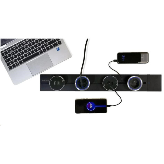 - Bezpečný a robustní design: Zásuvková lišta je vyrobena z odolné hliníkové slitiny, která zajišťuje dlouhou životnost a ochranu proti přehřátí. Těsnicí pásek chrání proti prachu a náhodnému dotyku, což snižuje možnost úrazu elektrickým proudem.