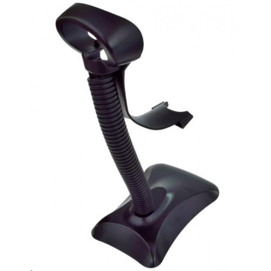 Laserový ruční snímač čárového kódu v černé barvě umožňující automatickou detekci přítomnosti kódu a dodávaný včetně stojánku. Konstrukce se vyznačuje vysokou spolehlivostí a odolnost. Je vybaven USB rozhraním umožňujícím emulovat klávesnici i sériový port.