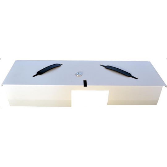 obsahuje Zásuvku s víkem, vnitřní plastový pořadač na peníze a mince, kovový uzamykatelný kryt na pořadač