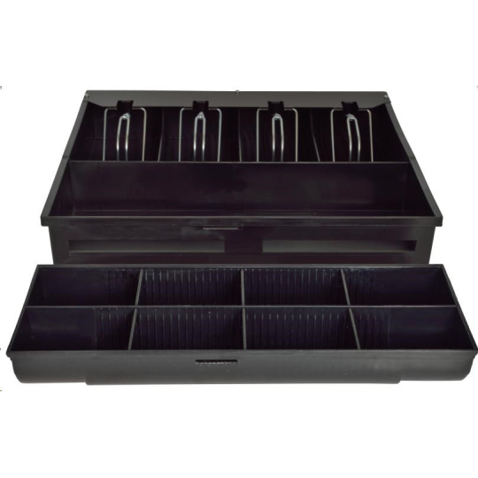 | Přihrádky | 4 x pro bankovky (nastavitelné) 8 x pro mince (nastavitelné)  |