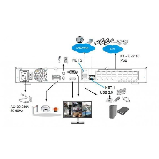 VIVOTEK ND9426P je záznamové zařízení pro 16 IP kamer VIVOTEK s podporou umělé inteligence (AI) a až dva pevné disky s celkovou kapacitou 32 TB. Integrovaný PoE switch pro 16 IP kamer s celkovým výkonem 120W. Klíčové parametry záznamového zařízení VIVOTEK ND9426P Připojení až 16 IP kamer VIVOTEK nebo jiných výrobců přes ONVIF Integrovaný 16-portový PoE switch pro přímé připojení a napájení IP kamer dle normy 802.3af/at s výkonem 200W Synchronní přehrávání až ze 4 IP kamer 4K rozlišení HDMI výstupu pro perfektně ostrý obraz USB na přední a zadní straně pro připojení klávesnice, myši, záložního zdroje či externího HDD pro export záznaům Operační systém Linux Možnost zapojení až 2x HDD o kapacitě 2x 16 TB (pevné disky nejsou součástí balení) Podpora RAID 0 a 1 Možnost plánované zálohy na FTP Lokální i vzdálený přístup z počítače, tabletu či mobilního telefonu Spuštění zařízení po obnovení napájení (při výpadku elektrického proudu) Podpora UPS zařízení světového výrobce APC Podpora standardu ONVIF pro připojení IP kamer jiných výrobců Podpora funkce VIVOTEK VIVOCLOUD pro snadné připojení z internetu Připojení operačních systémů MS Windows i Apple MacOS díky Firefox či Chrome Mobilní připojení z Android a iOS pomocí aplikace iViewer zařízení neobsahuje žádné čínské čipy (non-CHINA product) Nadstandardní vlastnosti záznamového zařízení VIVOTEK ND9426P podpora umělé inteligence (AI) pro rychlé a přesné vyhledávání v záznamech Dewarp funkce živě i ze záznamu z 360° IP kamer Smart Search II - pokročilé vyhledávání v záznamech Smart VCA Event Search - inteligentní vyhledávní VCA událostí Cybersecurity rozhraní pro snadnou analýzu útoků na zařízení v systému Trend Micro IoT Security - antivirus kamerového systému VIVOTEK Smart Stream III pro optimalizaci datových toků Podpora prohlížečů MS EDGE, Google Chrome, Mozilla Firefox Podpora IP kamer VIVOTEK se Smart VCA Propojení s pokladním systémem (POS) Více o zmíněných vlastnostech se dočtete v záložce "Test IP kamery". Doporučené použití záznamového zařízení VIVOTEK ND9426P Záznamové zařízení VIVOTEK ND9426P doporučujeme pro nejnáročnější uživatele, kteří se chtějí vyhnout serverovým aplikacím. I když je ND9426P určené pro malé kamerové systémy do 16 IP kamer, nabízím Vám stejné funkce jako serverové řešení pro velké. Díky integrované umělé inteligenci vyhledáte v záznamech velice rychle a přesně události, které potřebujete s možností filtrování aut, lidí a to i dle barvy, typu apod. Nově i podpora prohlížečů Edge, Firefox a Chrome jak z MS Windows, tak i z Apple MacOS..