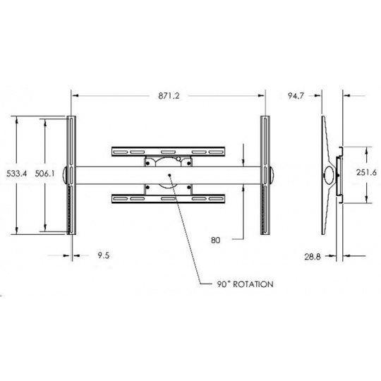 Univerzální držák pro displeje do 72 kg- souvislá rotace o 90° - možno nastavit směr - po nebo proti směru hodinových ručiček