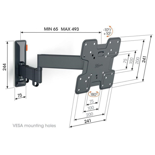 - Otočte televizor až o 180° díky 49 cm dlouhým ramenům