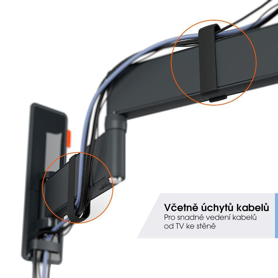 - Součástí balení jsou klipy na uchycení kabelů - ideální vedení kabelů od televizoru ke stěně