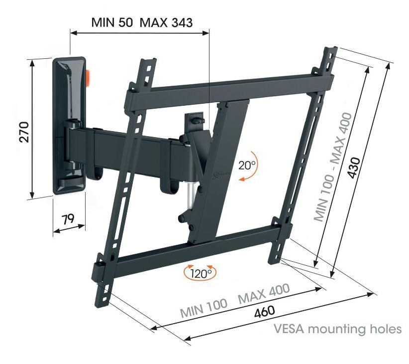 - Plynulé otáčení televizoru až o 120° (záleží na velikosti TV)