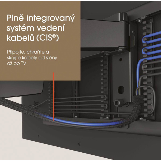 - Plně integrovaný systém vedení kabelů (CIS®) - Připojte, chraňte a skryjte kabely od stěny až po TV