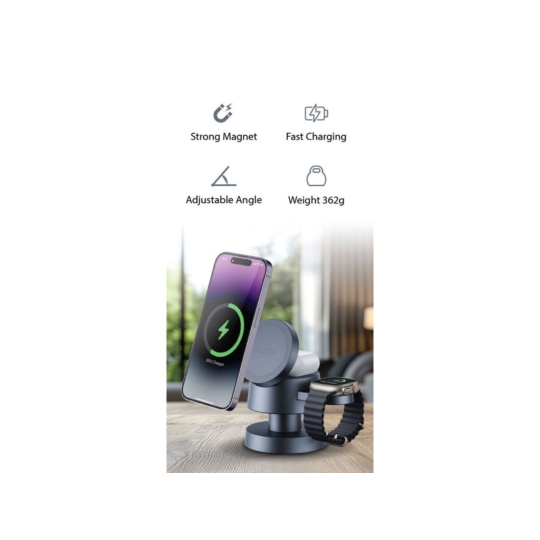 Tato elegantní 3v1 bezdrátová nabíječka s vestavěnou LED lampičkou je ideálním řešením pro moderní domácnosti a kanceláře. Nabízí rychlé a bezpečné bezdrátové nabíjení tří zařízení současně – iPhone, Apple Watch a bezdrátová sluchátka nebo Android telefon. Stylový a funkční design zaručí, že se stane nepostradatelnou součástí vašeho pracovního stolu nebo nočního stolku.