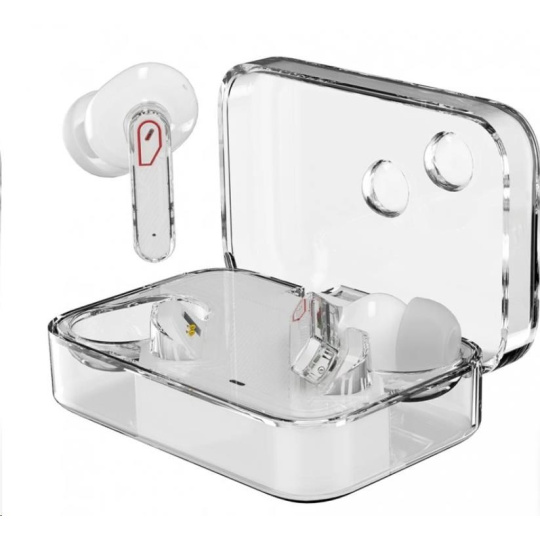 Obsah balení: Nabíjecí pouzdro, 2x sluchátko, 2x náhradní silikonové špunty, kabel Type-C 30cm, návod k použití.